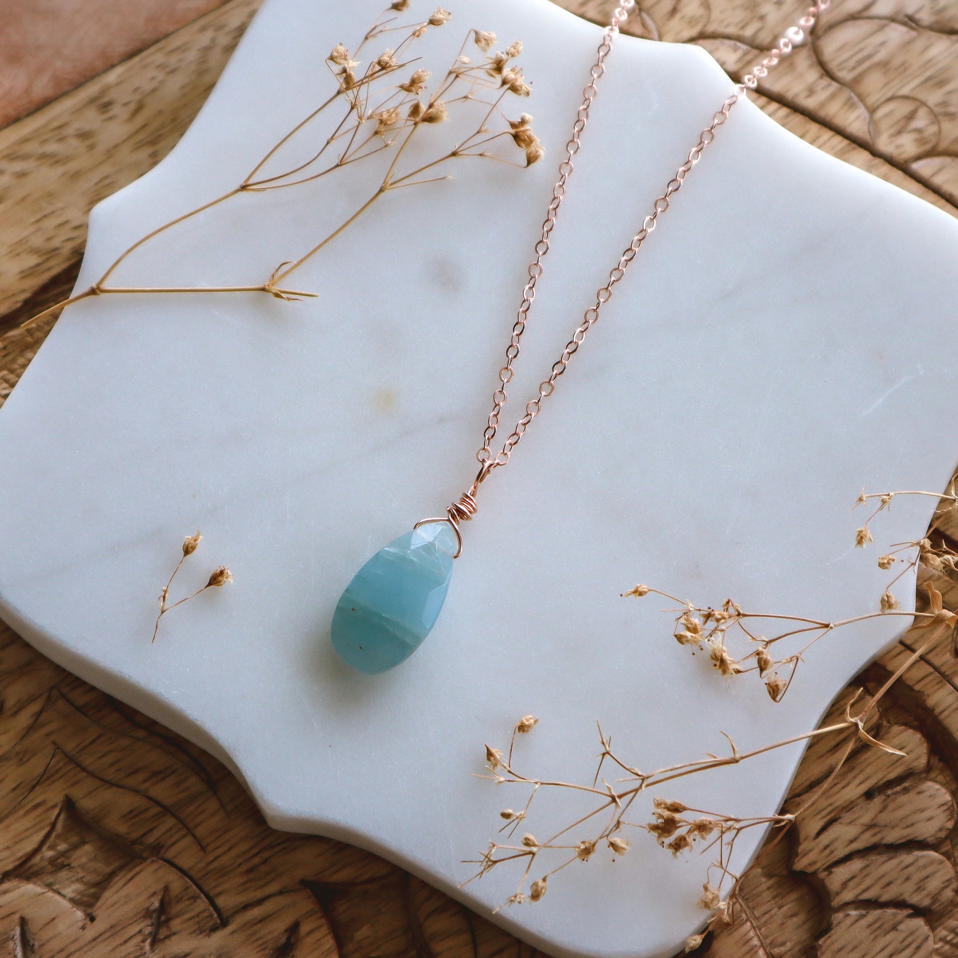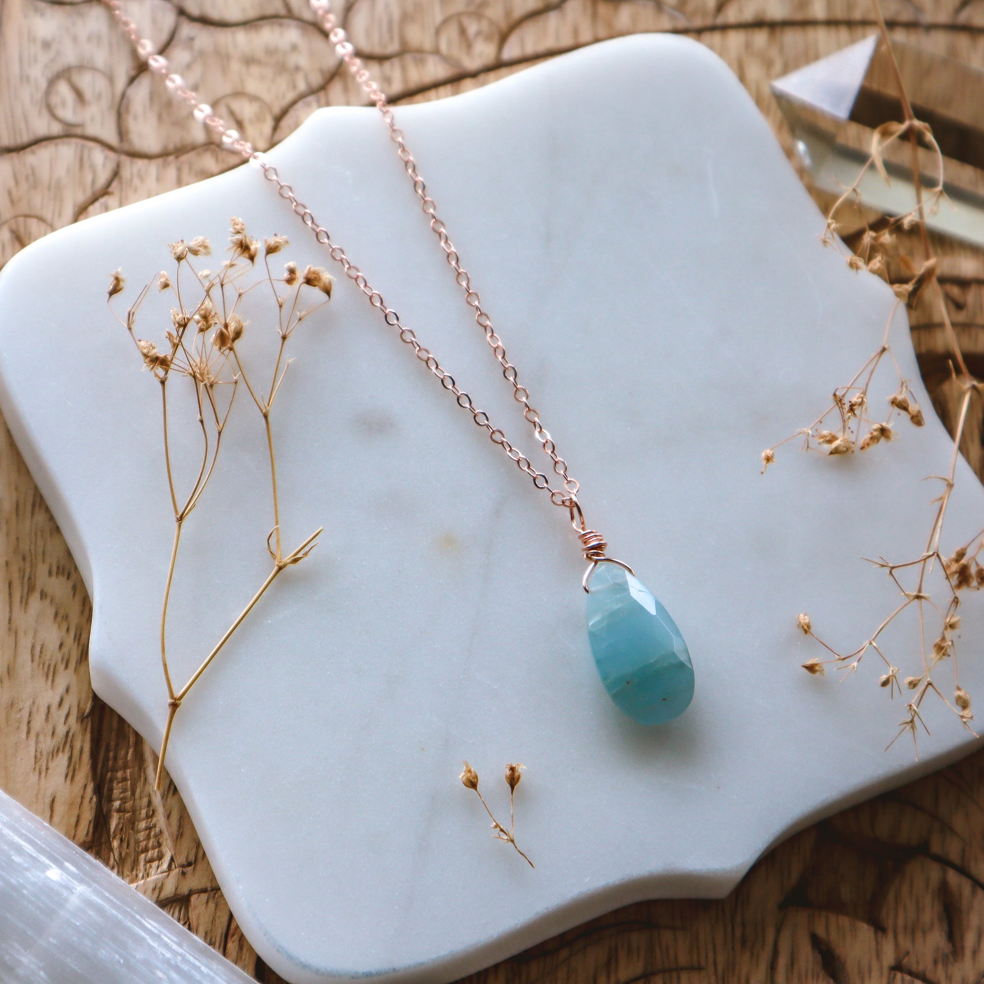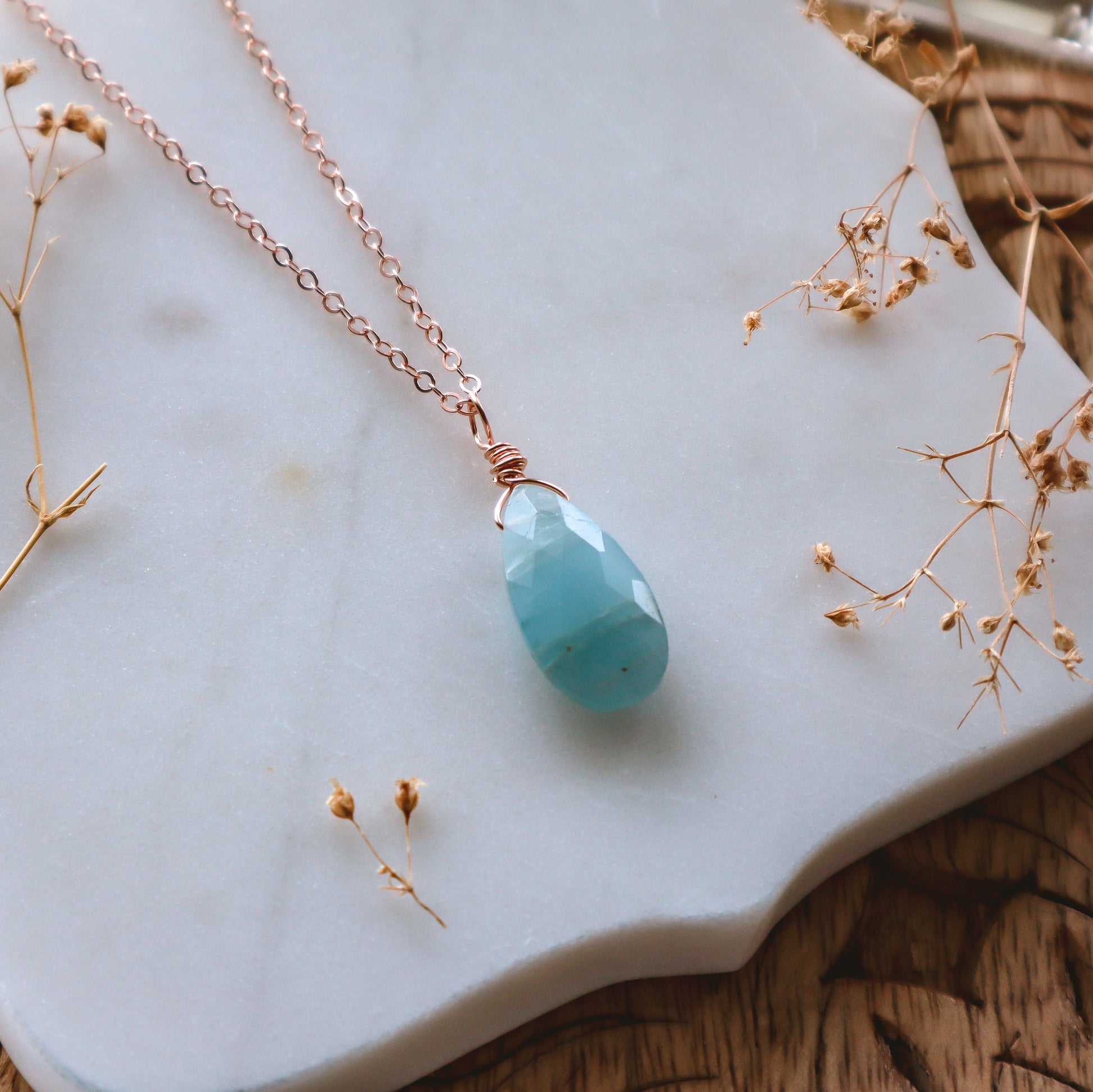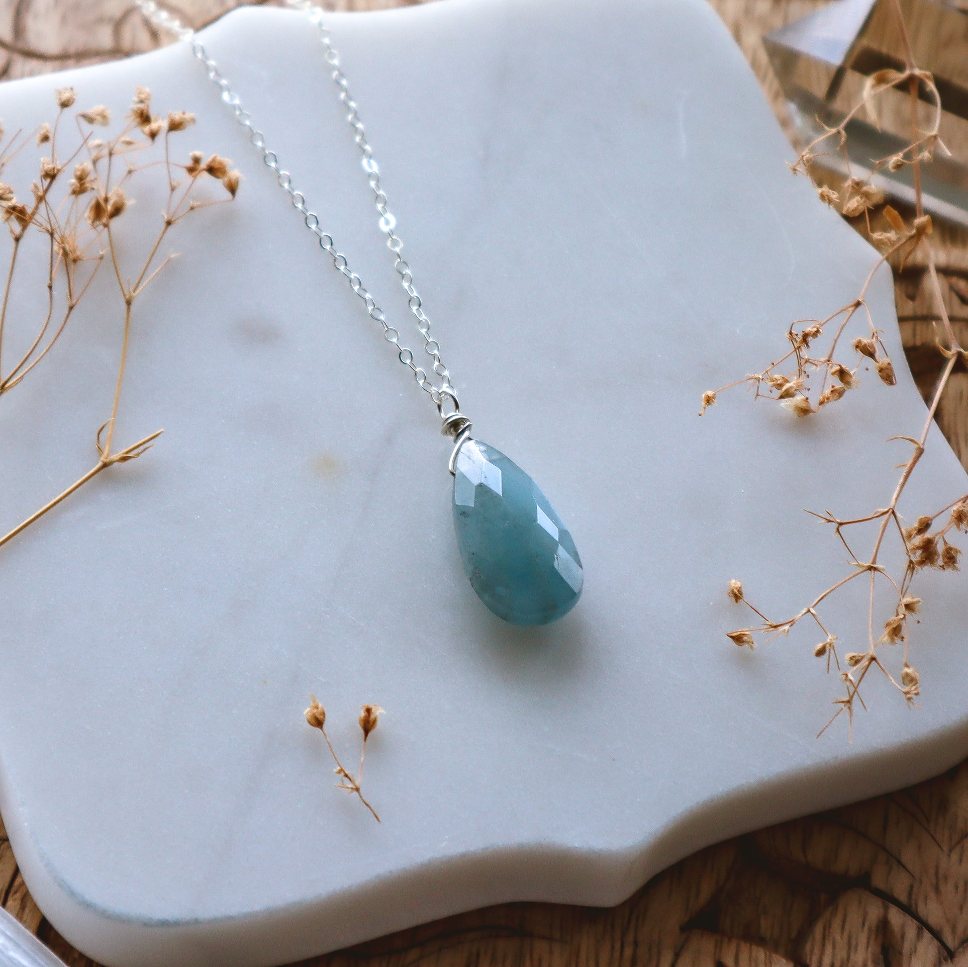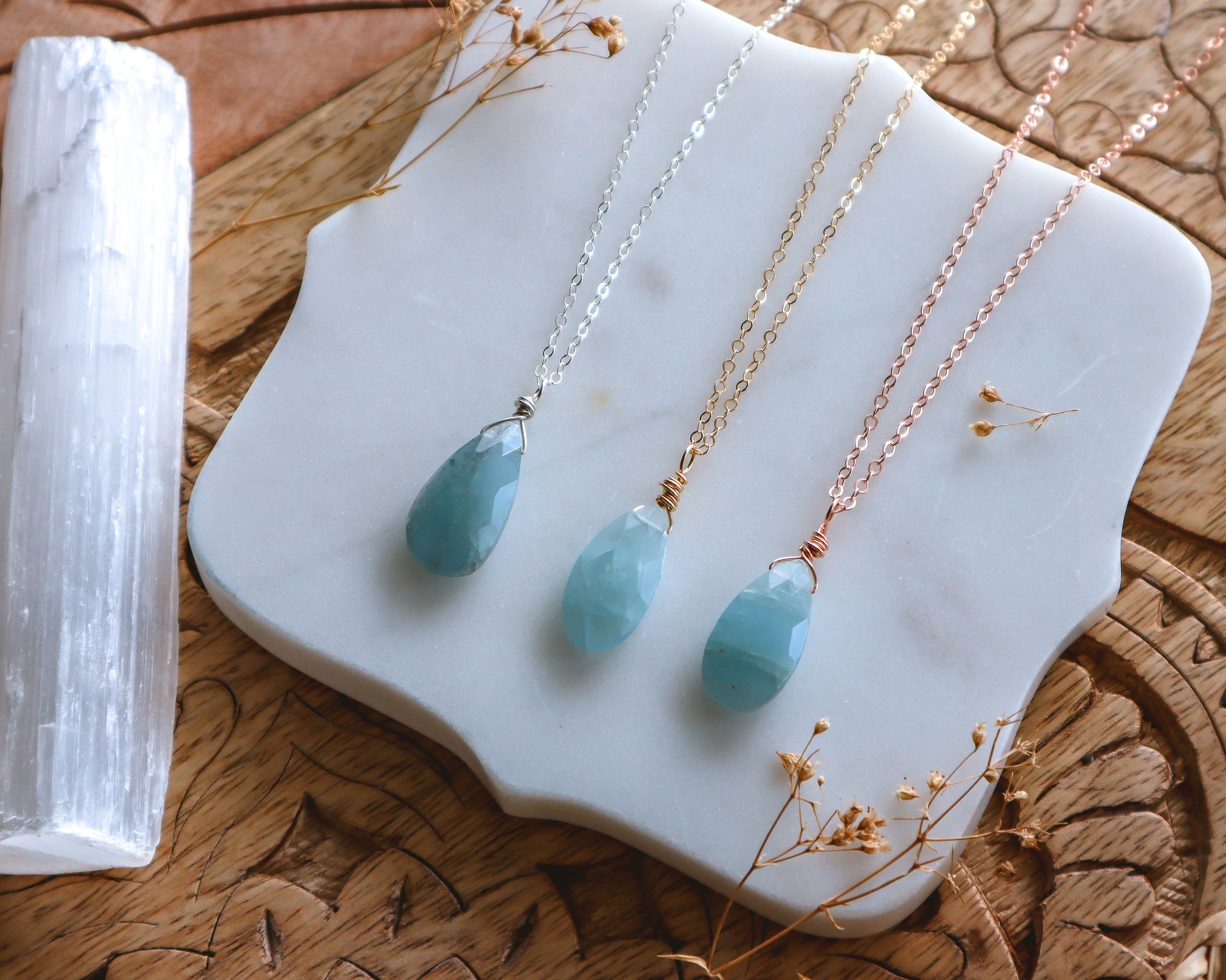 Beautiful, aquamarine teardrops on dainty chain. Chose your length and metal (sterling silver, gold-filled, or rose gold-filled). Closes with a lobster clasp in the back. The drops dangle about 25-30mm from the chain.