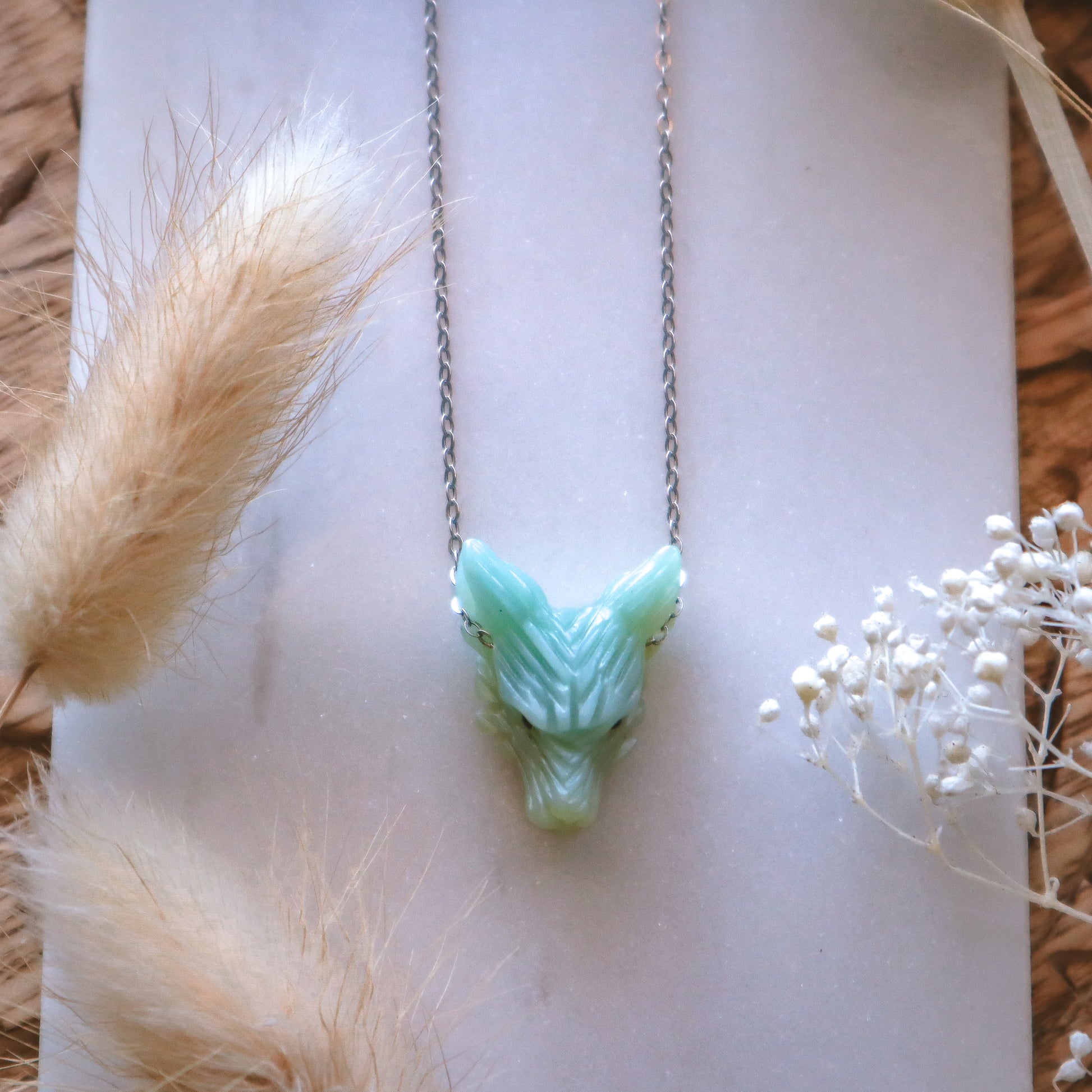 Dainty Amazonite Wolf Necklace