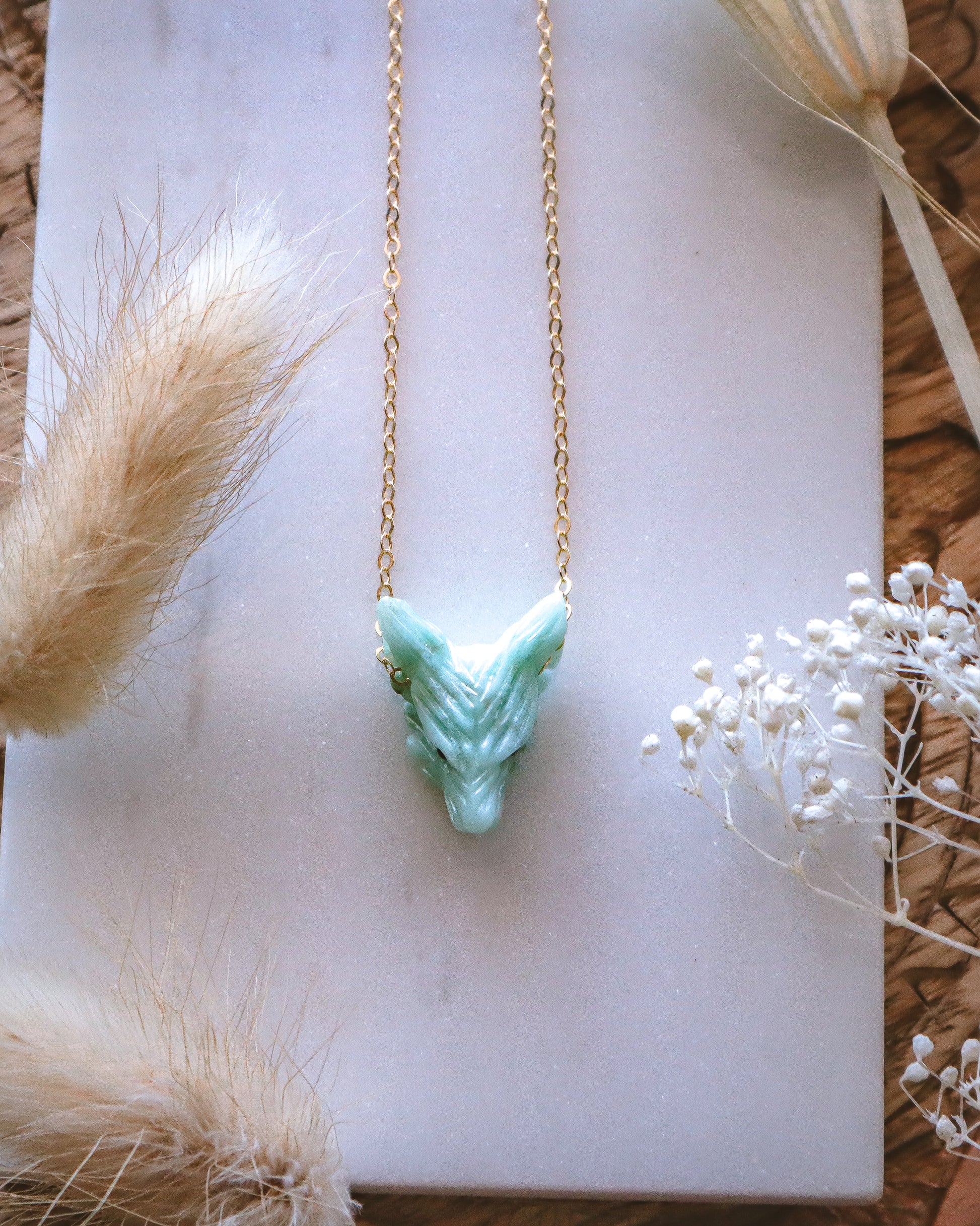 Dainty chrysocolla wolf | 14k gold filled | 15"