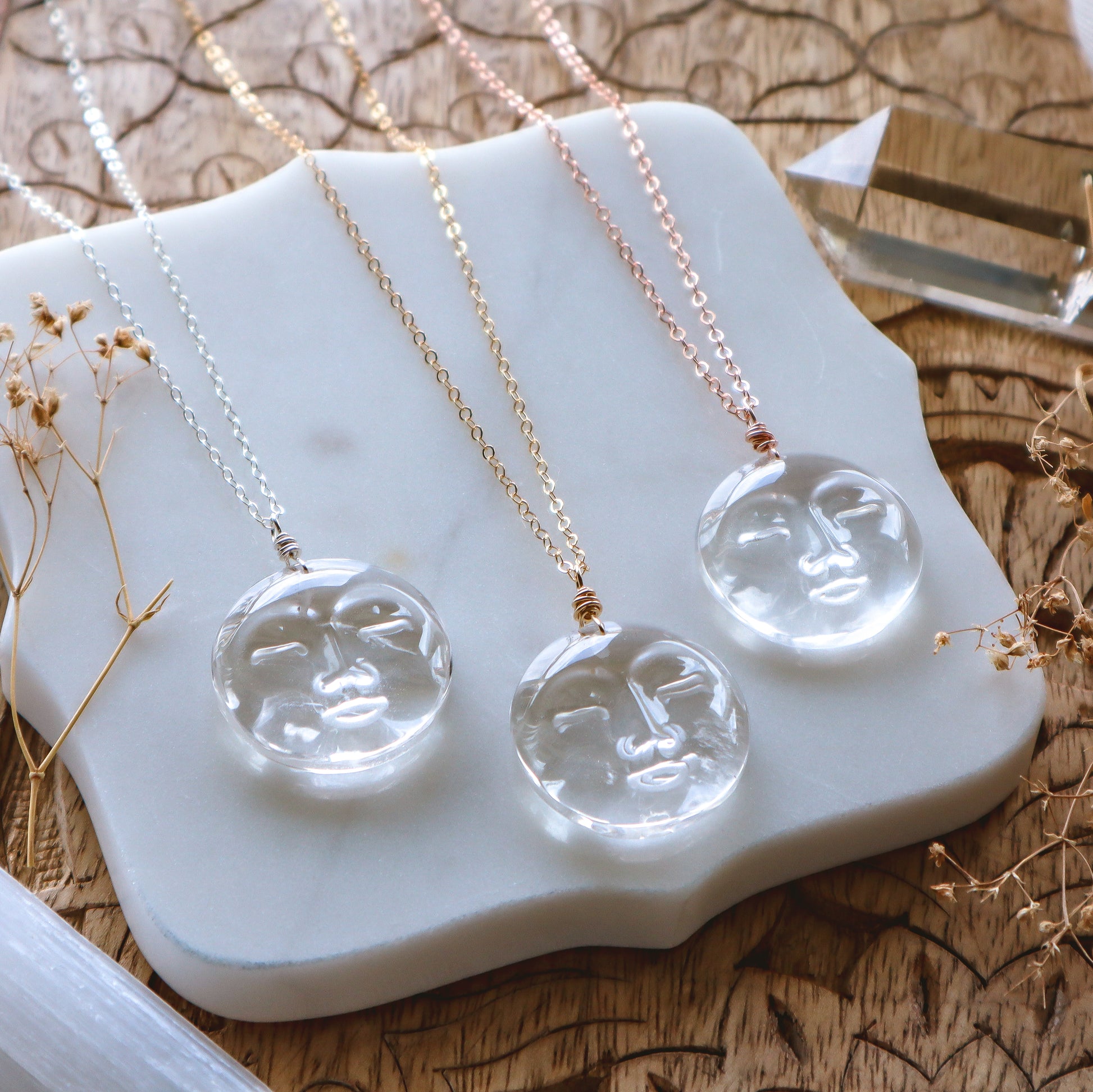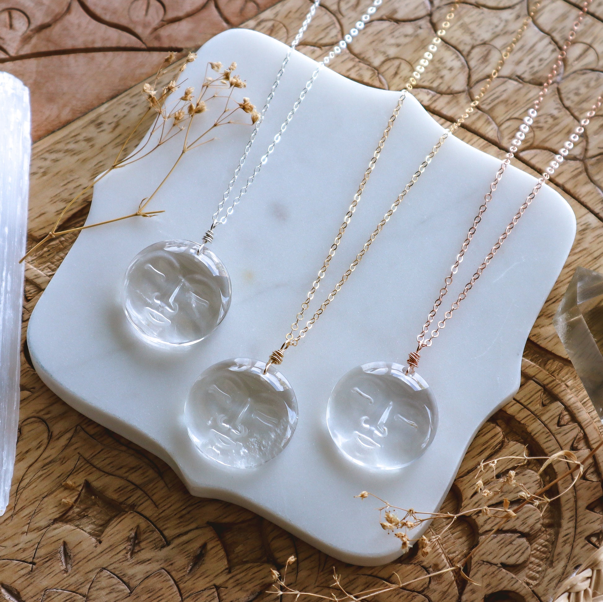Large Clear Quartz Moon Face Necklace | Choose your metal