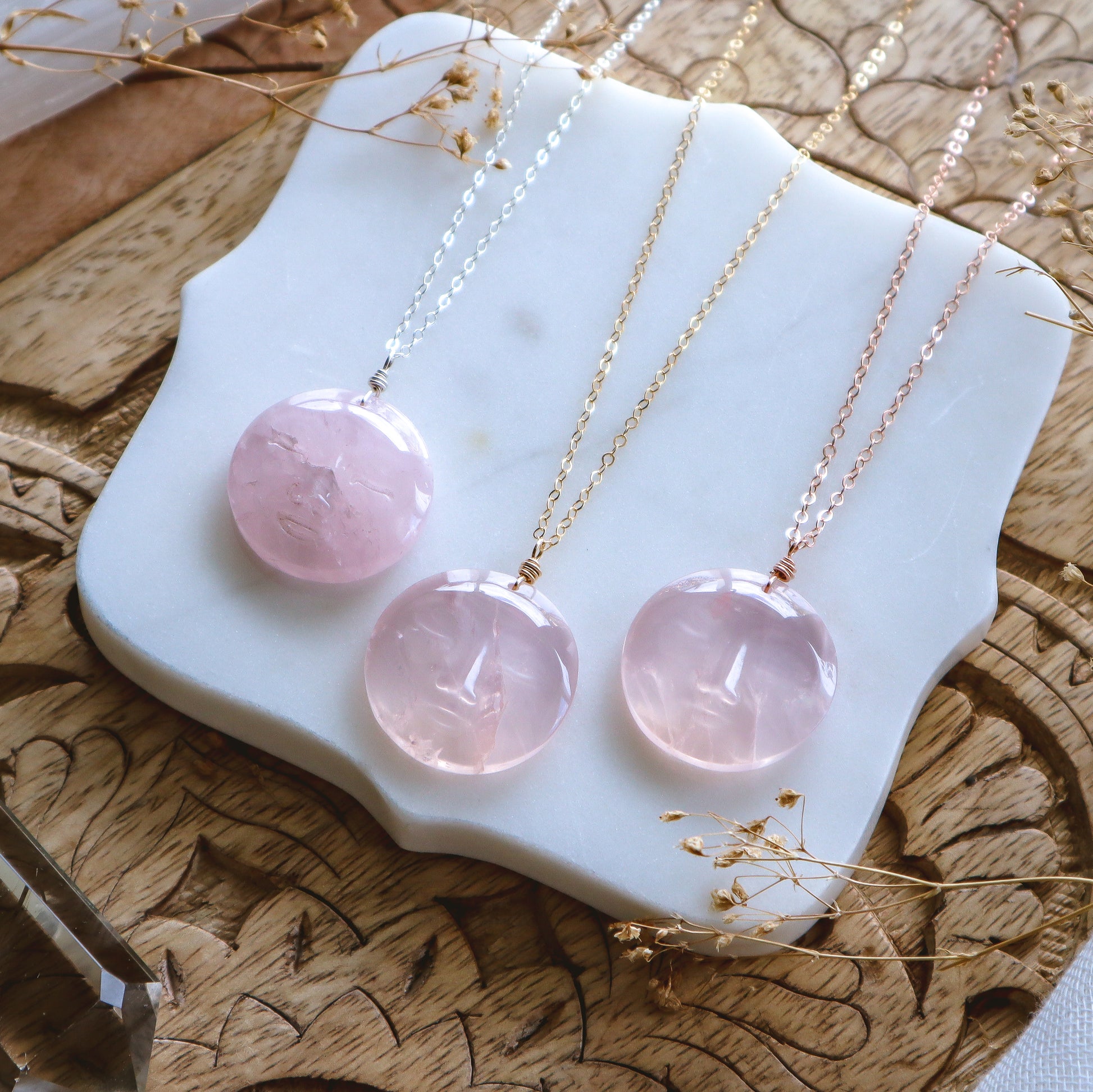 Large Rose Quartz Moon Face Necklace | Choose your metal