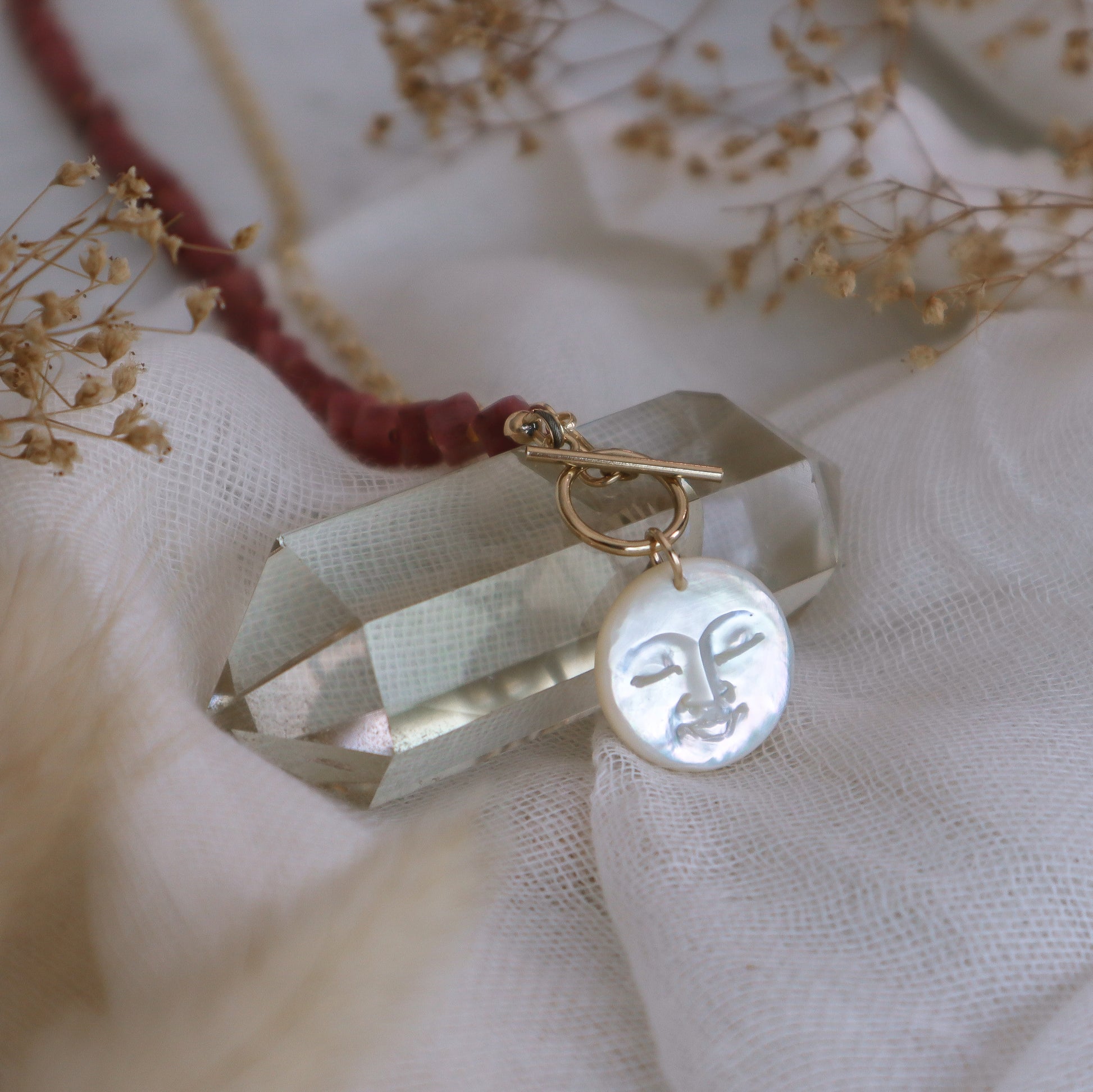 Mother-of-Pearl Full Moon | Half-Beaded Paperclip Necklace | 14k Gold-Filled