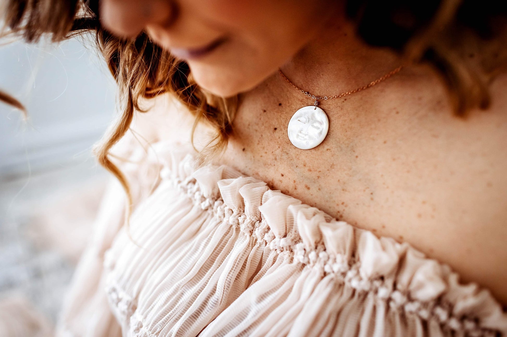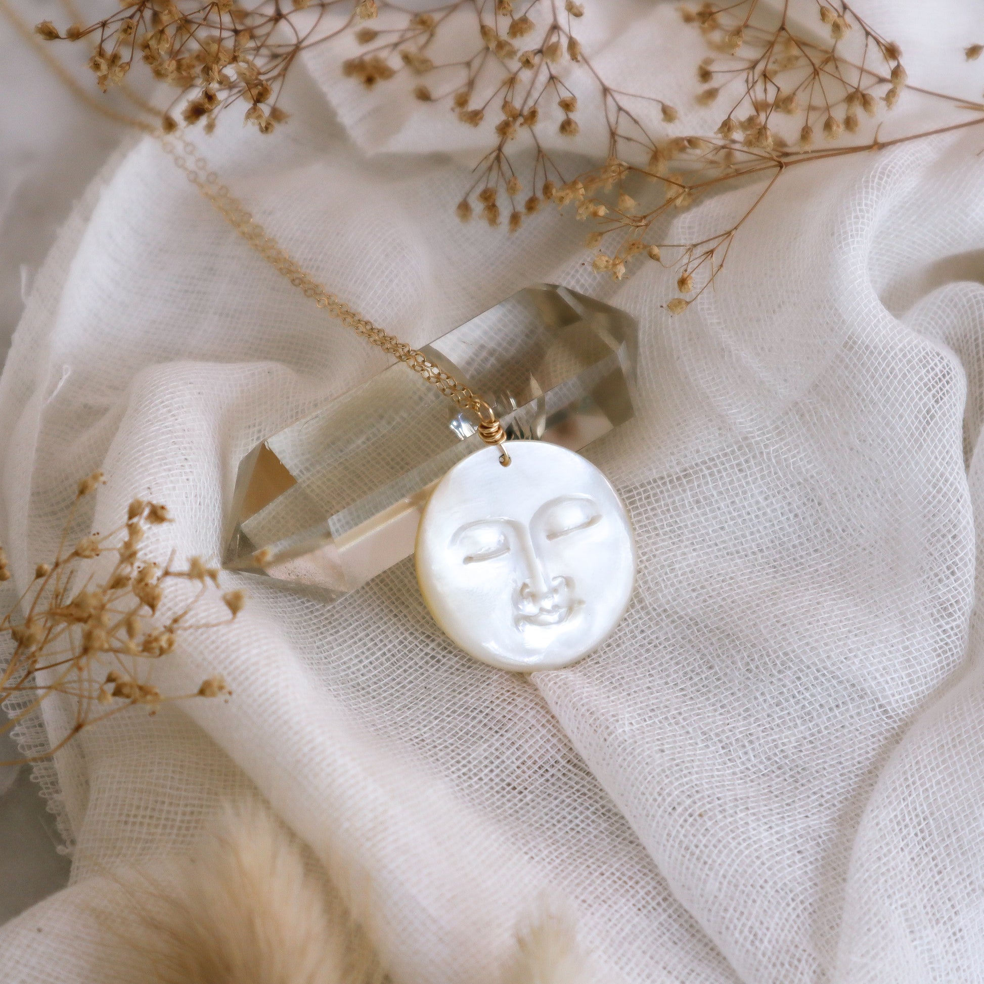 Mother-of-Pearl, Large Full Moon Necklace | Choose Your Metal