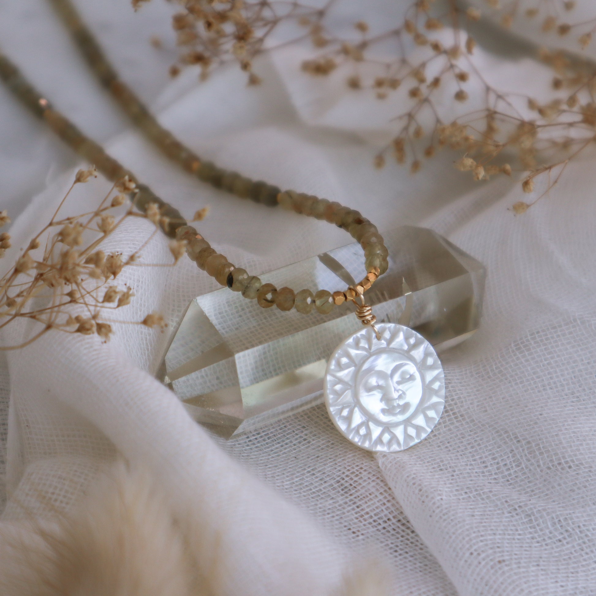 Mother-of-Pearl Sun | Beaded Necklace