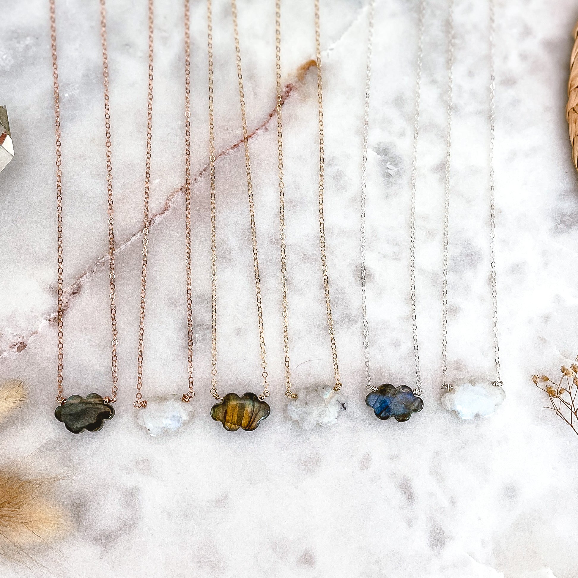 High-grade labradorite cloud necklace. All have beautiful flash.